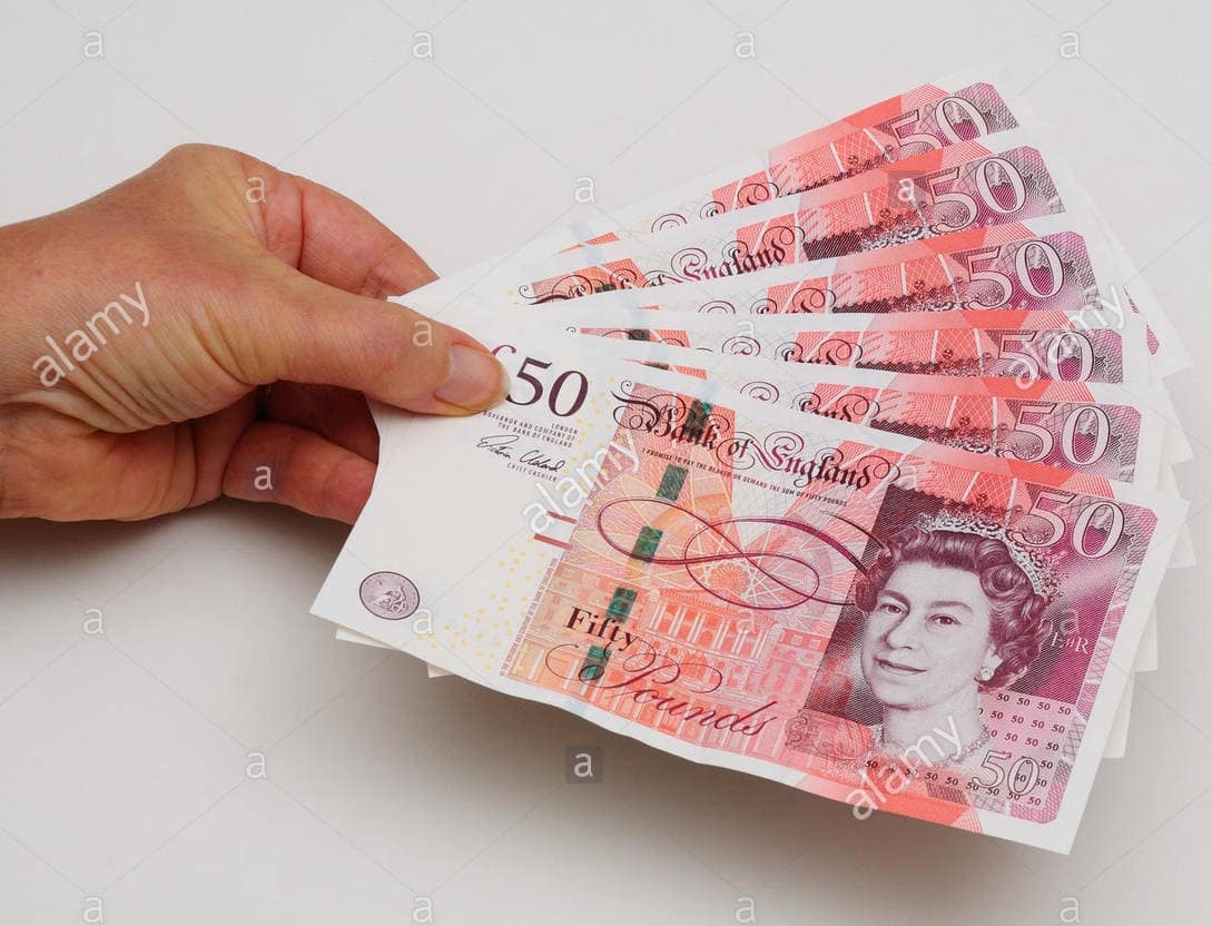 - 50 pounds banknotes.